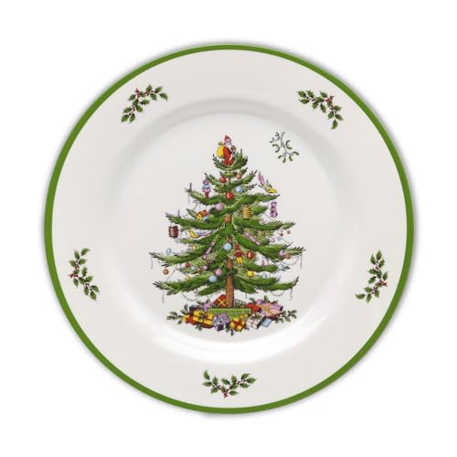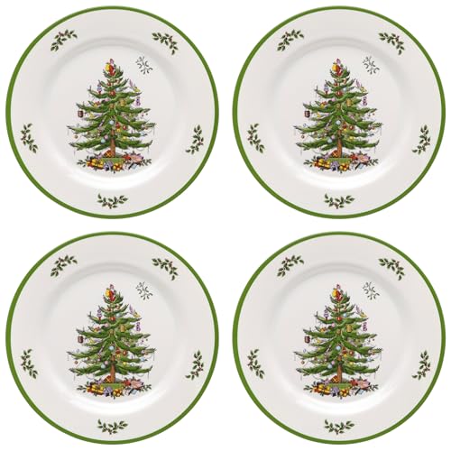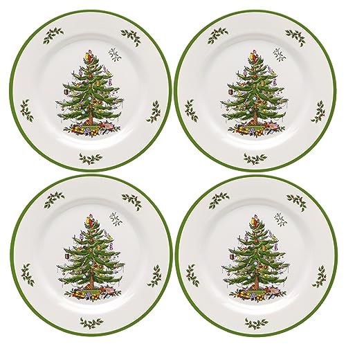 Spode Christmas Tree Melamine Dinner Plate (Set of 4) - 11 Inch Shatterproof Serving Plate for Holiday Meals, Holiday Party - Festive Tableware for Indoor & Outdoor Use, Dishwasher Safe Dinnerware
