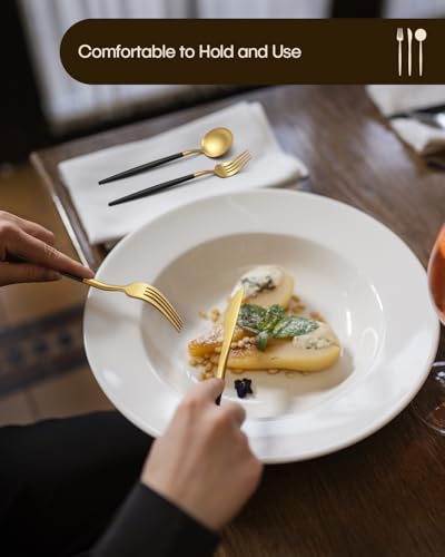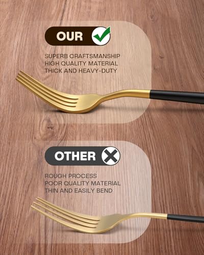 SLEEK AND ELEGANT DESIGN - This matte gold silverware set with a black handle has classic profiles and clean lines, with a distinct sense of design and luxury that can match well with any style you already have. The matte gold finish, special shape, and exceptional quality add an elegant touch to any table setting. Perfect gift for your family and friends.