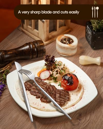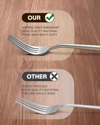 FOOD GRADE STAINLESS STEEL: Our silverware sets are made of premium stainless steel, it offers nice resistance to rust and corrosion to get the most sturdy and healthy experience, and never bends in daily use, much better than the cheaper ones