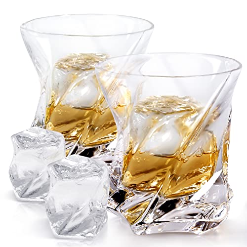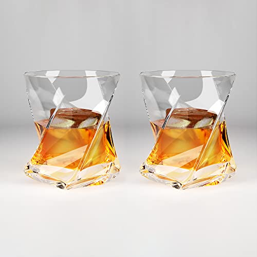? Drink In Style: Heavy Duty Crystal (almost 1lb Each) , Your Whiskey Glasses Will Come Alive With Vibrant Colors And Sparkle, The Angles Of The Glass Will Reflect Light In A Special Way. The Swirl Design Makes It Easy To Grasp And Prevents The Whisky Glass From Slipping Between Your Hand. Perfect For Any Spirit: Whiskey, Scotch, Rum, Bourbon, Rye, Vodka.