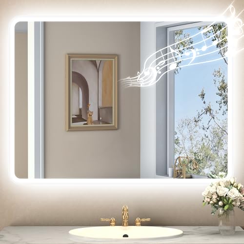Built-In Bluetooth Speakers: Enhance your bathroom experience with our LED mirror’s dual Bluetooth speakers; Offer 360-degree surround sound; Easily connect to your phone for enjoying music or podcasts