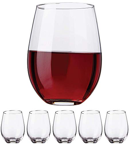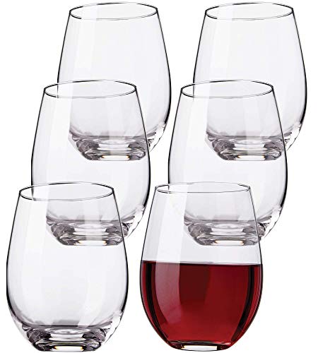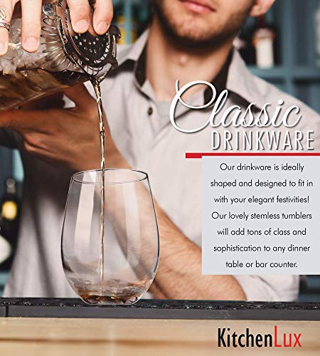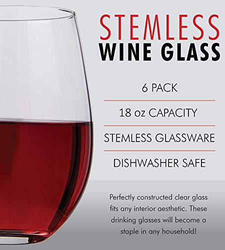 Stemless Wine Glasses Set, 18oz – Set of Elegant Cocktail Tumblers – Premium Glass Drinking Cups – Deluxe Gift Pack - Dishwasher Safe – by Kitchen Lux (6 Pack)