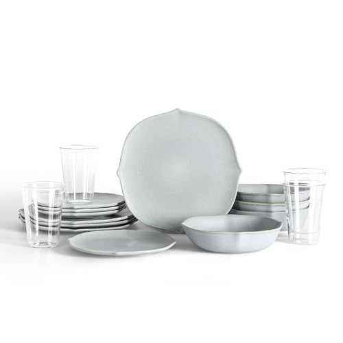 WHAT'S INCLUDED: Enjoy delicious meals indoors or alfresco with a complete set of 16 pieces: 4 10.75” dinner plates, 4 8.3” salad plates, 4 8.1” pasta bowls, and 4 15.2 oz glasses.
