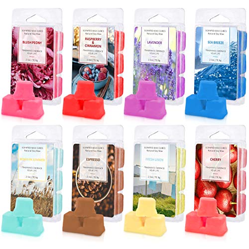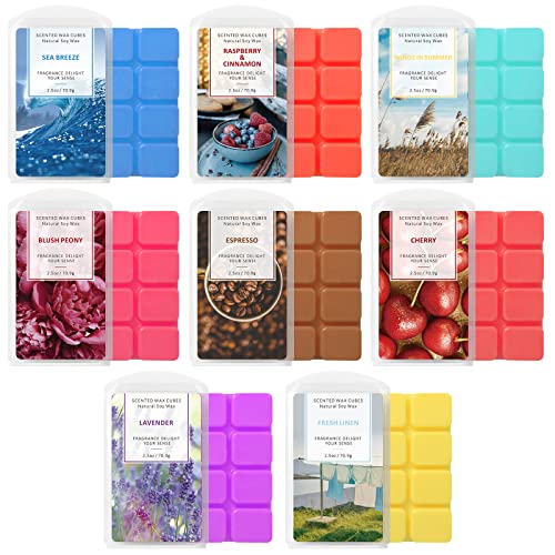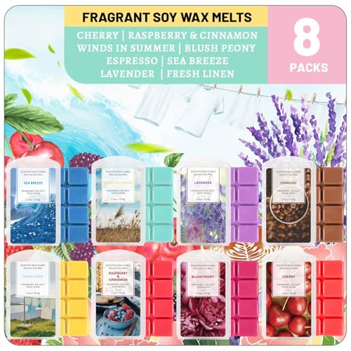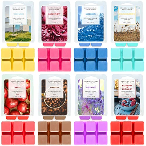 STRN Scented Wax Melts, Soy Wax Cubes, Wax Melts Wax Cubes 2.5 oz X 8 Pack for Warmer Cubes/Tarts Blush Peony, Raspberry&Cinnamon, Laverder, Sea Breeze, Winds in Summer, Espresso, Linen, Cherry