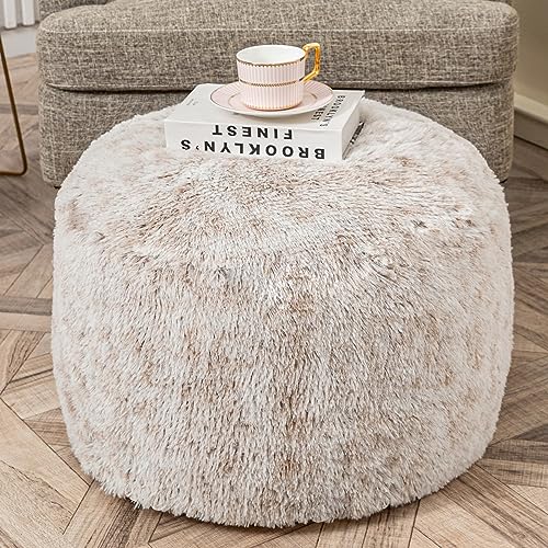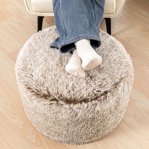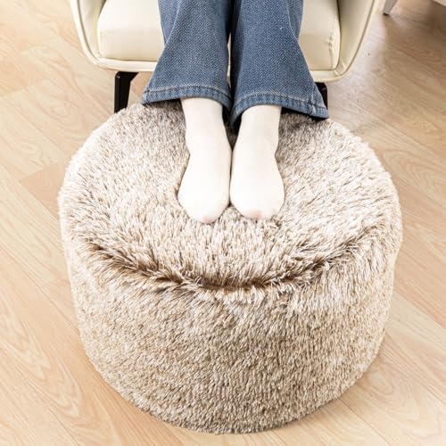Stuffed Pouf Ottoman with Modern High-Density Foam Plush Fiber Pouf Stool Ottoman Round Foot Stool Cushion Storage Ottoman 20 * 12''Floor Poufs Ottoman Foot Rest for Living Room (Snow Coffee)