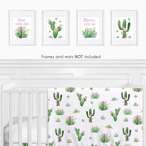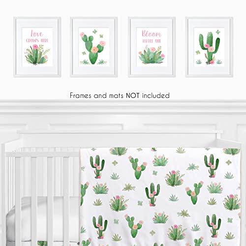 Sweet Jojo Designs Pink and Green Boho Wall Art Prints Room Decor for Baby, Nursery, and Kids for Watercolor Cactus Floral Collection - Set of 4 - Love Grows Here, Bloom Little One