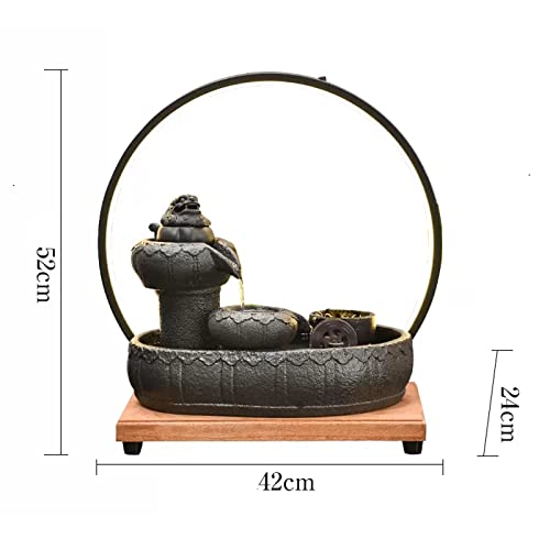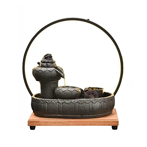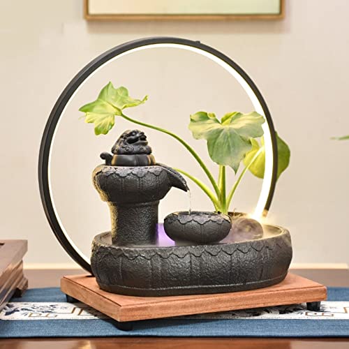 Tabletop Fountains Ceramic Tabletop Fountain with Wooden Base and LED Light Ring Indoor Ceramic Tabletop Fountain for Home Decoration Table Desk Office Patio Indoor Water Fountains