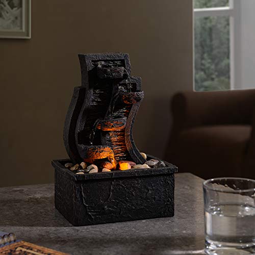 BUILT-IN LED LIGHTS: Built-in LED lights keep the fountain lit to add calming illumination to your space