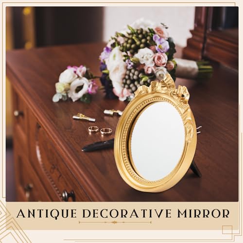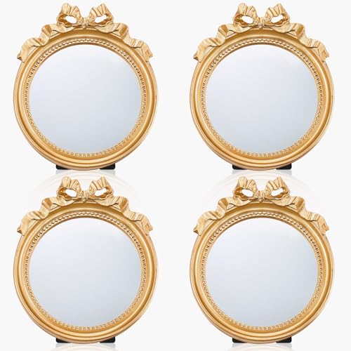 Ample Amount: each package includes 2 small vintage portable mirrors; This gives you more flexibility to decorate your room or spread the vintage touch in your home; The back of the gold bow mirror is equipped with a triangular hook and stand, allowing you to hang it on the wall or place it on a table
