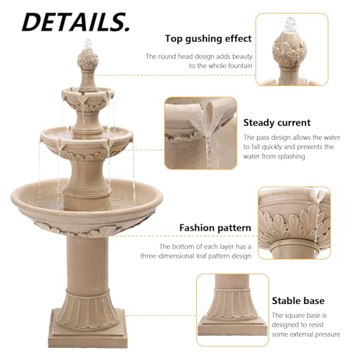 Top Gushing Effect and Classic Three-blade Pattern Design:Unique three leaves pattern design makes the overall shape of the fountain more exquisite. The water flows from the top design of the decorative flowers in turn into the three basins below