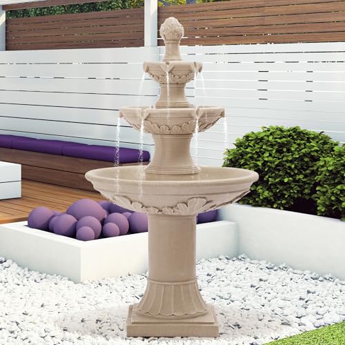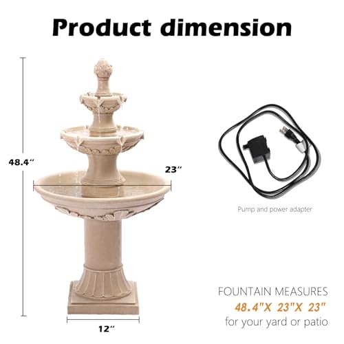 TITIMO 48" High Italian Feature Freestanding Water Fountain Outdoor and Indoor,3-Tier Roman Pillar Waterfalls Fountains for Garden,Patio,Yard,Deck,Backyard,Porch