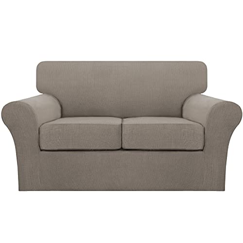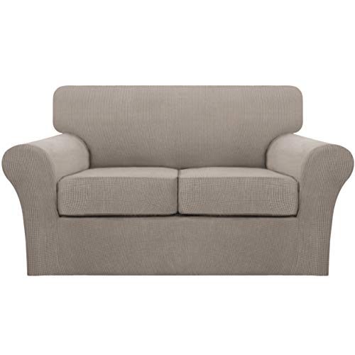 INDIVIDUAL CUSHION COVERS: These creative 3 PIECES sofa covers are sophisticated designed, including 1 piece of base cover and 2 individual cushion pieces. Crafted from 85% Polyester/15% spandex thicken jacquard fabric with small checks pattern. This sofa slipcover will ensure higher elasticity and is more durable than other ordinary cover for its thicken design