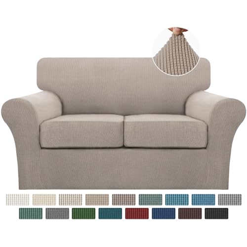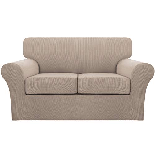 INDIVIDUAL CUSHION COVERS: These creative 3 PIECES sofa covers are sophisticated designed, including 1 piece of base cover and 2 individual cushion pieces. Crafted from 85% Polyester/15% spandex thicken jacquard fabric with small checks pattern. This sofa slipcover will ensure higher elasticity and is more durable than other ordinary cover for its thicken design
