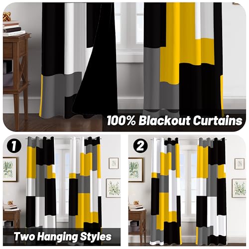 ????EFFECTIVE LIGHT BLOCKING: Our yellow and gray geometric full blackout curtains with black backs can completely block out 100 percent sunlight even during the sunniest days. Providing you with a dark environment to enjoy your favorite movies or sleep well. Perfect for those who value complete privacy and want to create a peaceful and relaxing environment in their home.