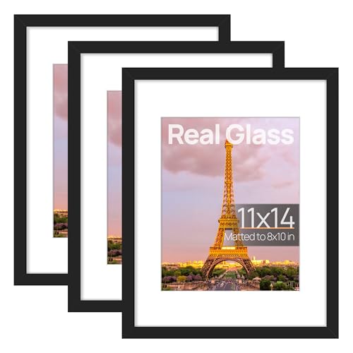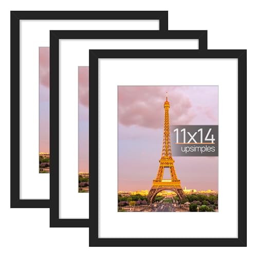 SIZE: One wall black photo frame fits 11x14 frame without mat, 8x10 frame with mat. Mat opening was designed slightly smaller than photo itself in order to hold it steadily while not a defect.