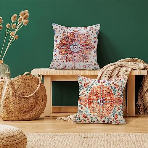 VAKADO Outdoor Boho Decorative Throw Pillow Covers 18x18 Set of 2 Spring Farmhouse Vintage Rust Coral Orange Cushion Cover Home Decor for Living Room Bedroom Bed Cushion Cases
