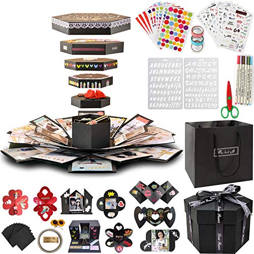 ????Accessories Upgrade: 1 x Finished Explosion Gift Box, 3 x Adhesive Tapes, 1 set of DIY stickers, 3 x Photo Corner Stickers, 1 x Lace Scissors, 2 x Text Template, 6 x Small Stickers, 6 x Color Metal Pens, 1 x Exquisite Gift Paper Bag