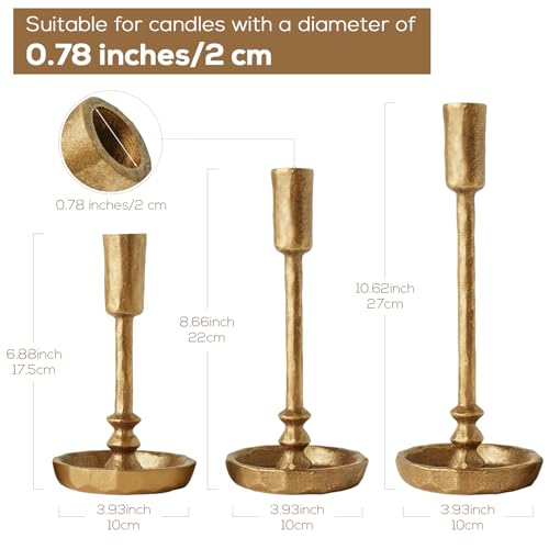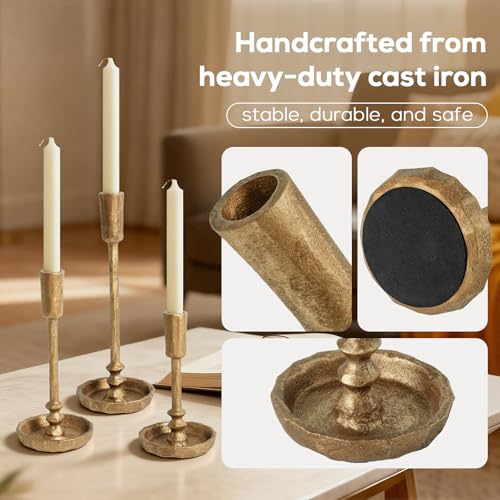 ?Timeless Vintage Elegance?These gold candle holders feature a warm antique brass finish and are crafted from durable cast iron to bring vintage charm and rustic sophistication to any decor. Perfect as brass candlestick holders, they blend seamlessly with farmhouse, modern, and classic interiors.