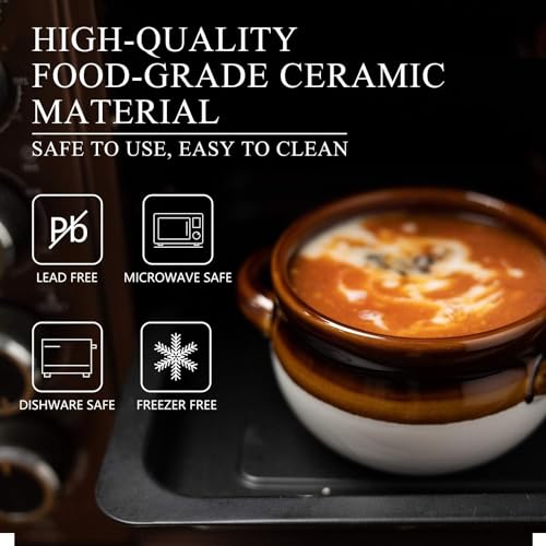 FOOD-GRADE MATERIAL: The oven safe soup bowls are made of high-quality ceramic, which can withstand higher temperatures. Durable and chip-resistant for long use. The excellent coated glaze does not fade and protects it not easily dirty.