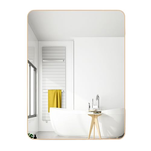 Wall Mirror Rounded Rectangle Mirror with Metal Framed Thin Trim for Hanging Hallway Living Room Bedroom Home Decor(Gold,16x24in)