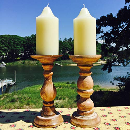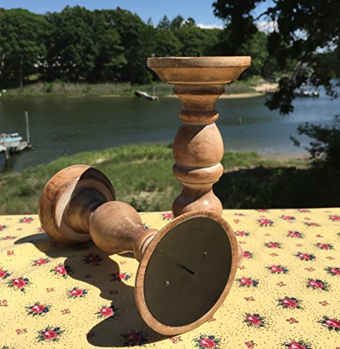 Featuring graceful designs of traditional farmhouse elegance, this set of 2 handmade turned wooden candle holders will showcase your pillar and votive wax or LED candles.