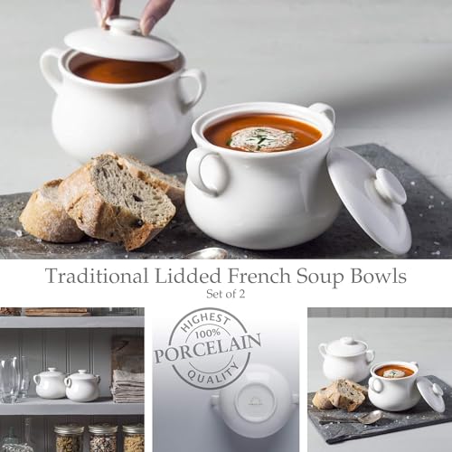 Premium quality classic French bowl with porcelain lid for onion soup, stews, hot pot, rice, noodle, pasta also ideal for serving many other types of food.