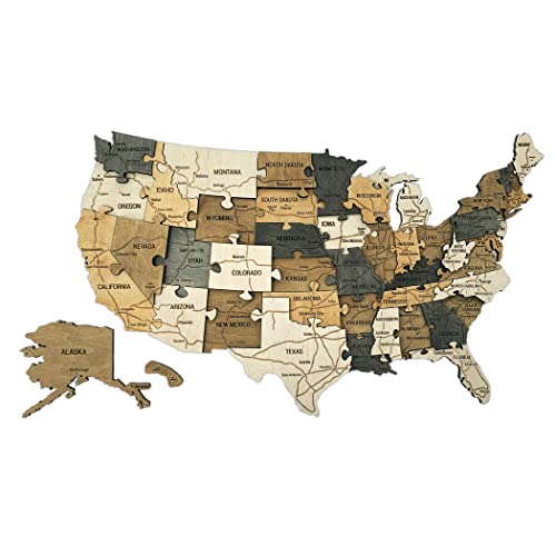 Awesome 3D Puzzle Map: Handmade with natural wood by talented craftsmen, this wood puzzle map is composed of pieces in the shape of the US states with the important cities and main roads connecting the states that will keep your mind busy for hours!