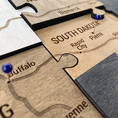 Mark Your Travel Goals: This wood map decor not only helps you learn but it can also be used as a travel map where you can mark your traveling goals, the cities and states you want to visit or those you’ve already seen with the push pins included in the set!