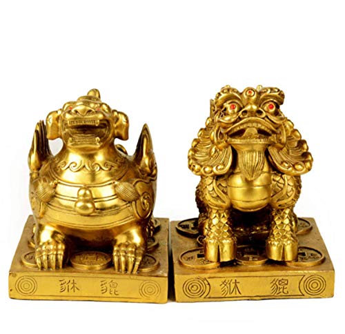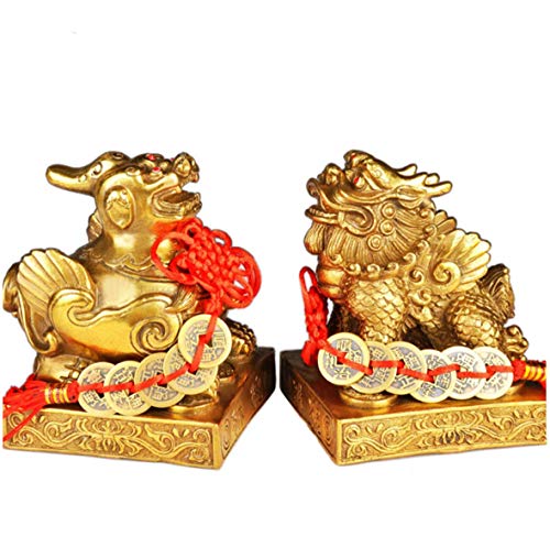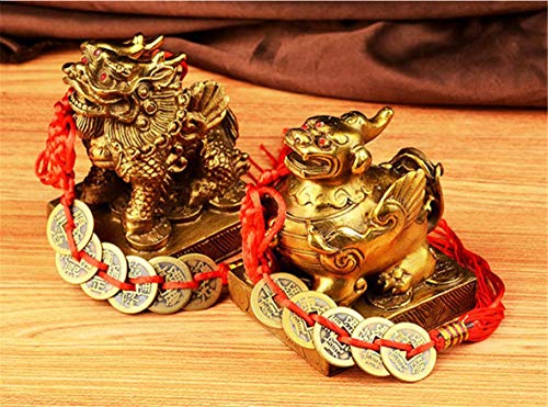Material: Copper ,size: 2.16inch * 2.04inch * 2.75inch (male) 2.04inch * 1.89inch * 2.67inch (female), Set includes: Pixiu( male )*1, Pixiu (female)* 1, the five emperors Qian *2