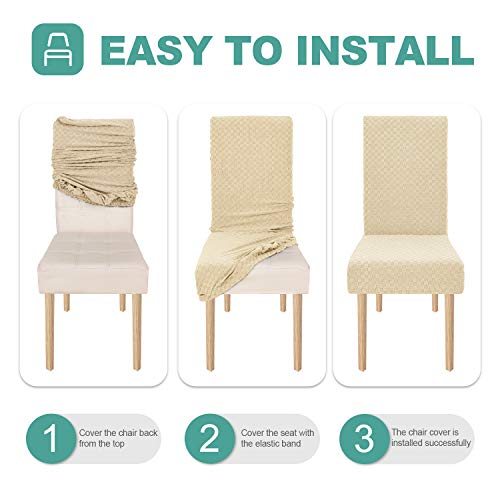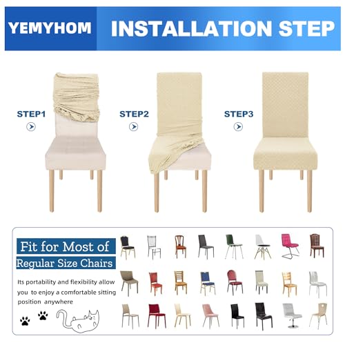 Amazing Material: YEMYHOM Dining Chair Cover is made of 85% polyester and 15% spandex jacquard fabric. The premium upholstery material makes this dining chair slipcover thick, durable, wrinkle-free, soft and skin-friendly. Innovative design with larger and wider checker pattern keeps your old chair feel like wearing a new outfit. Really an easy and relatively inexpensive way to change your home decor