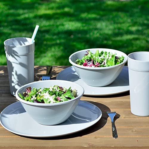 Large Dinnerware Set - Total 18 pcs. 6 sets Plastic Dinnerware. Each set contains a 32oz Bowl, a 20oz Cup, and a 10inch Plate. Grey Color