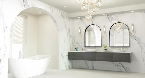 This beautiful arched mirror is perfect for hanging in a bathroom hall farmhouse living room foyer fireplace hotel entrance hallway Add spatial light to your space décor