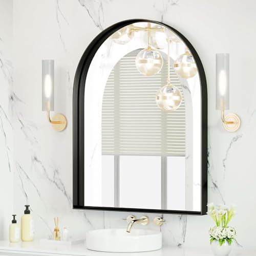 YYXW Bathroom Mirror 12x 16 Black Arched vanity Mirrors, Metal Frame Black Matte Brushed Wall Mirror, Bathroom Mirrors for above Sink, Arched mirors for wall