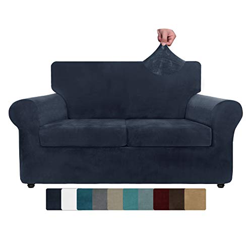 Separated Design: These 3 pieces loveseat covers are specially designed for sofas with 2 removable cushions, It consists of one base love seat couch slipcover and two cushion covers. The individual design makes it more convenient for you to take off the dirty seat cushion covers separately for washing, saving you much effort and time, and it looks neat, no wrinkles, and nice. Machine washable in cold water, tumble dry low, do not bleach or iron